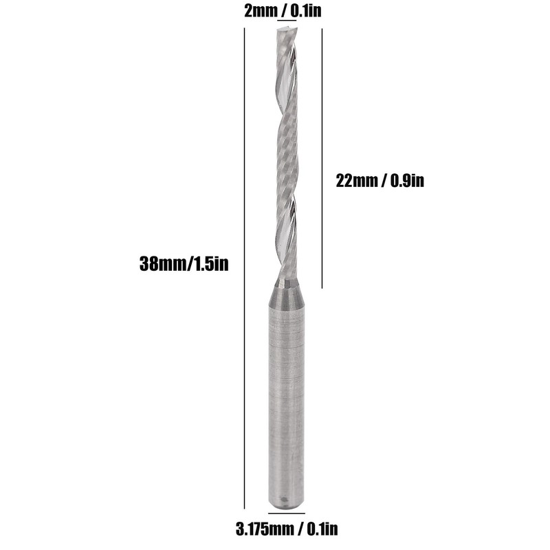 - Size --- The flute end has a shaft diameter of 3.17 mm, a cutting diameter of 2 mm, a cutting length of 22 mm and a total length of 45 mm. This makes it ideal for precise grinding tasks in various applications.