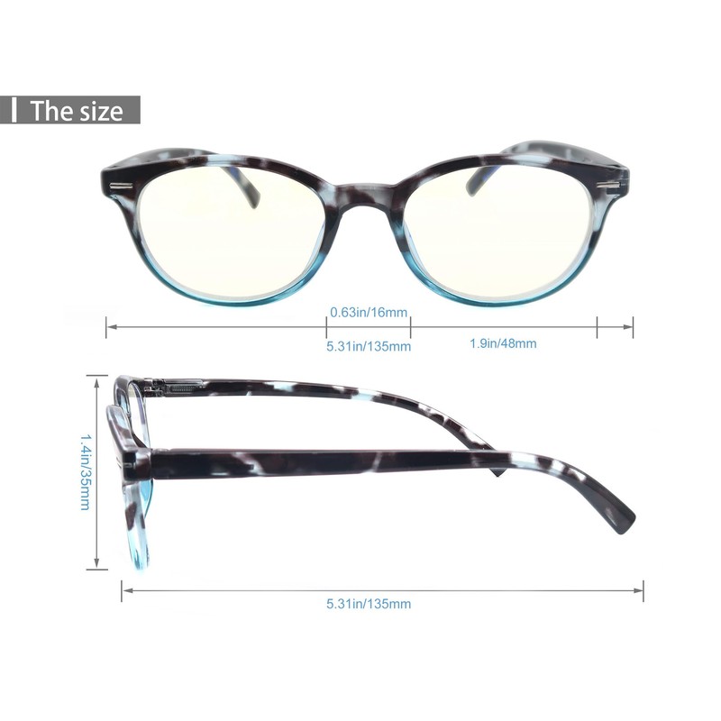- 【Blue Light Reading Glasses】Blue light blocker with UV400 protection, anti glare and cut more than 99% of harmful blue ray; Reduces eye fatigue, headache and blurred vision caused from long periods of reading, digital screen (phone PC TV), computer gaming and work under fluorescent lights.