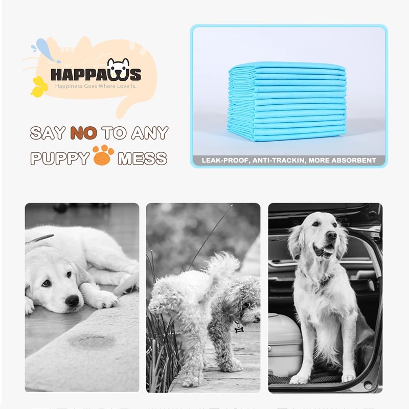 - đăOdor Control Padsă With five layers of absorbency to lock in wetness, a leak-proof PE lining, a bonus quilted top layer that dries fast to keep paws dry thus to prevent tracking, and advanced agents that eliminate odors, HAPPAWS puppy pad keeps your floor clean and your home smelling fresh.