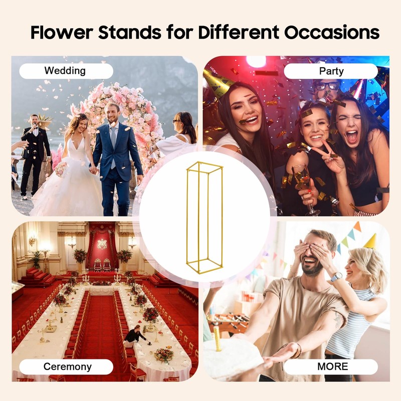 HAPPCUCOE Flower Stand,Geometric Centerpieces Flower Stand For Tables,Rectangular Wedding Flower Display Stand Gold Flower Holder For Weddings,Parties