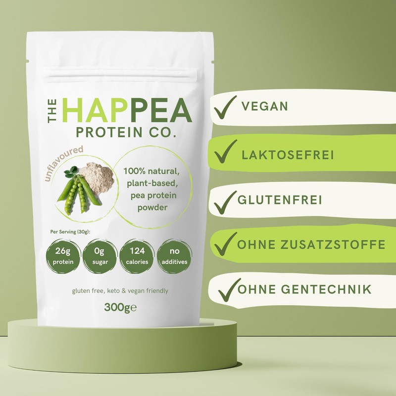HAPPEA 100% Pea Protein 300 g, Vegan Protein Powder, Purely Plant-Based, Natural, 85% Protein Content
