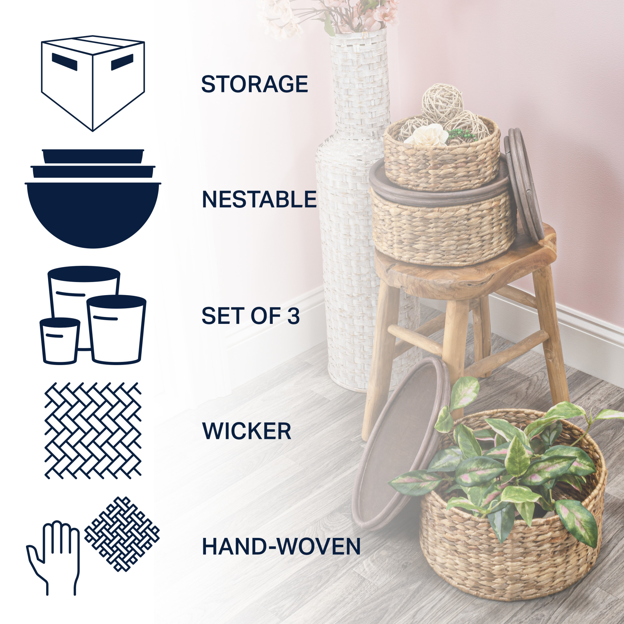 - Crafted with beautiful and durable water hyacinth