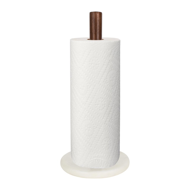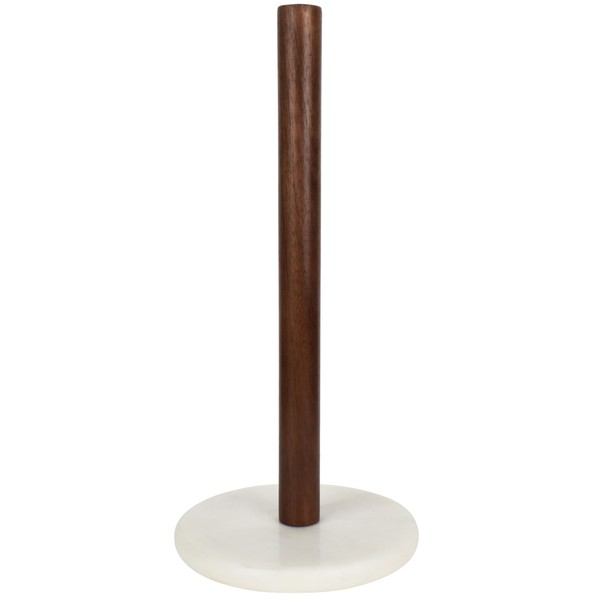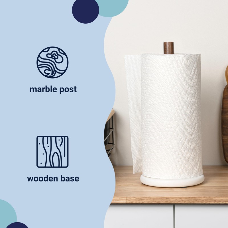 happimess PRH2000B Avery Modern Classic Wood with Non Slip Weighted Marble Base Paper Towel Holder, for Bathroom Kitchen Countertop, Standard or Jumbo-Sized Roll Paper, White/Natural