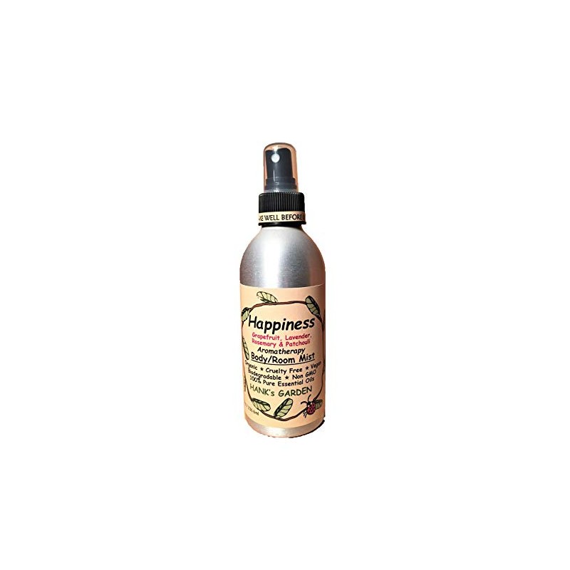 Happiness Aromatherapy Body Room Mist Spray - Lavender, Grapefruit, Rosemary, Patchouli - 100% Pure Essential Oils, Vegan, Organic, Non GMO (8 oz)