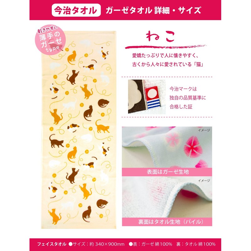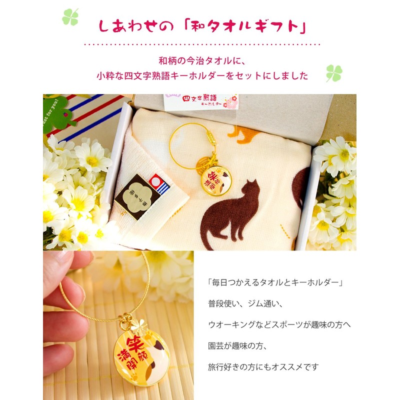 [Happiness Japanese Towel Gift] 2 Piece Set (Imabari Towel [Gauze Type] + Key Ring) (Cat)