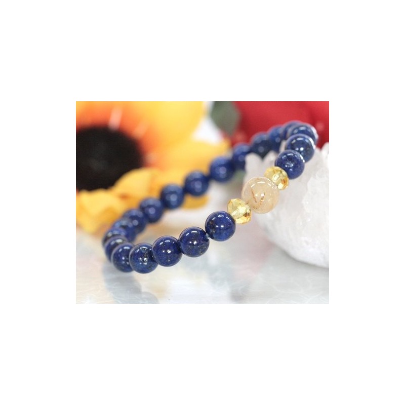 [Happiness Stone] Lapis Lazuli Gold Rutile Citrine Bracelet Natural Stone Power Stone Accessory, Crystal, Lapis Lazuli