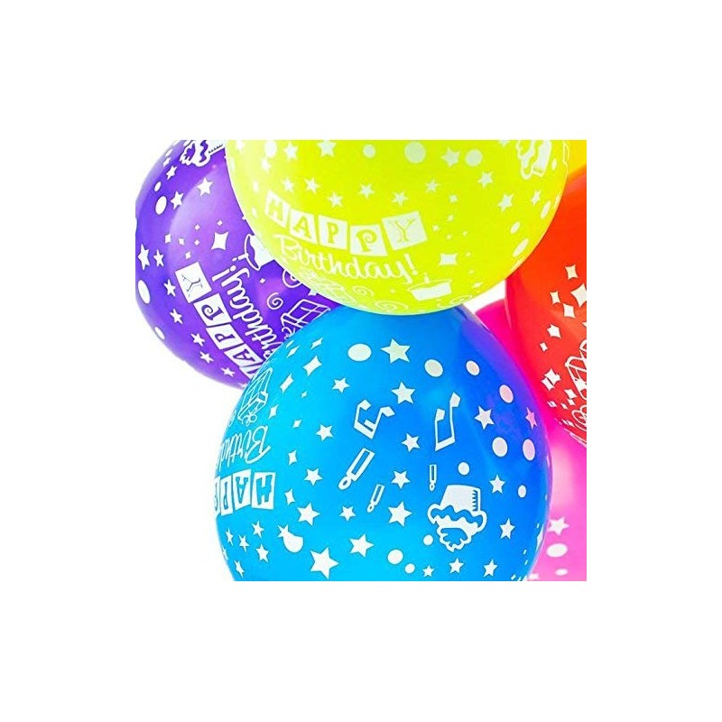 - These colourful "Happy Birthday" balloons are made of high quality latex and are suitable for inflating with air or helium, creating a cheerful and festive atmosphere.