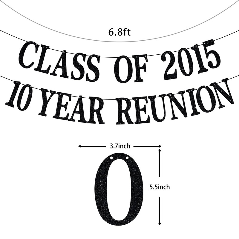 • Class of 2015 10 Years Later Banner: celebrate your celebrate 10 years class reunion party with this banner, making your party more beautiful and shinning.