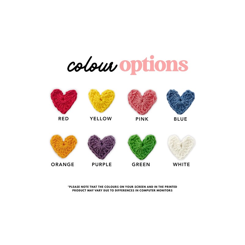 - The crochet element is hand crocheted with 100% cotton yarn and stuck to the card with hot glue. (A range of colours available)