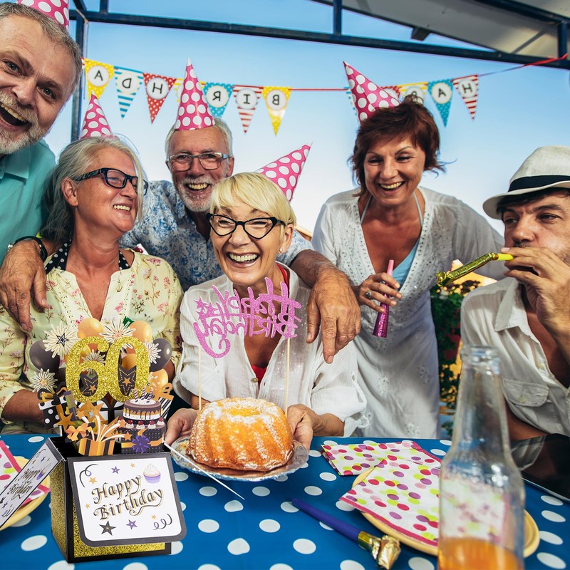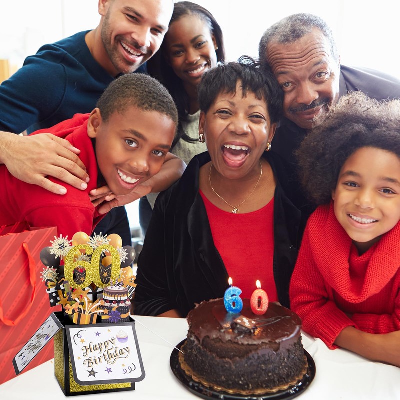 Happy 60th Birthday Pop Up Card, 3D Birthday Pop Up Greeting Card for Daughter Son with Envelopes, Unique Handmade Foldable Party Decoration Supplies