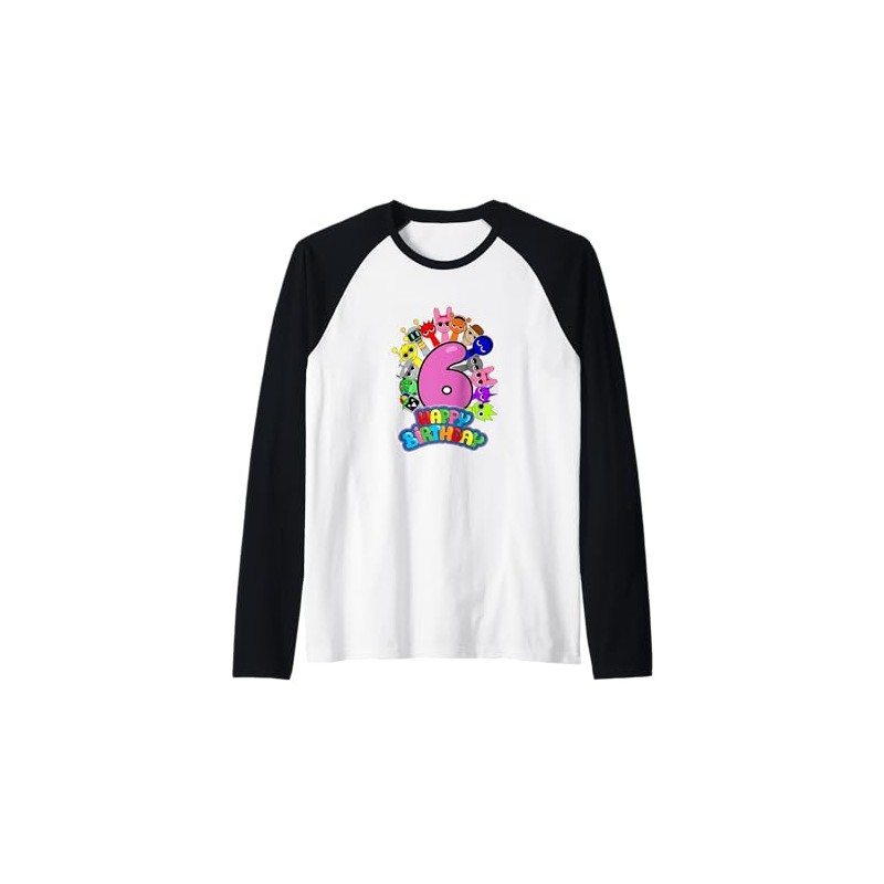 Happy 6th Birthday Sprunky! | Simon Funbot Oren Pinki Raglan Baseball Tee