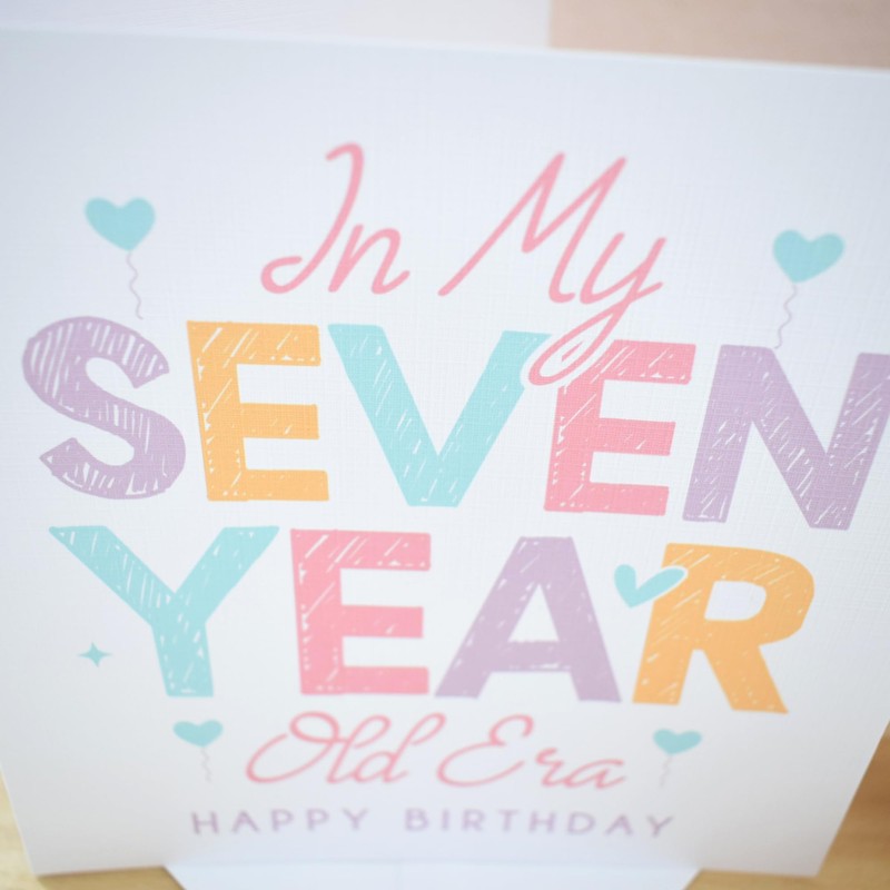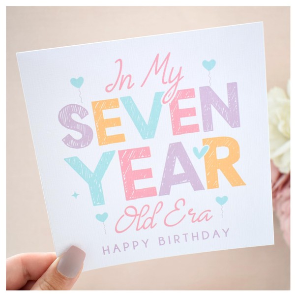 Happy 7th Birthday Card | Taylor Era Birthday | In My 7 Year Old Era | Eras Card | Seventh Bday Daughter Niece Cousin Best Friend Card | 148mm Square Modern Greeting Card