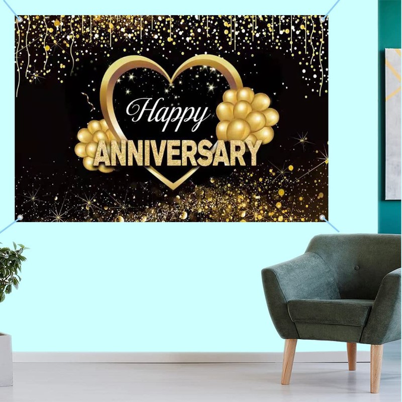 - ❤ Exquisite design: Happy Anniversary banner with black background, glittering gold flecks, golden balloons and heart elements, suitable for all kinds of anniversary celebrations.