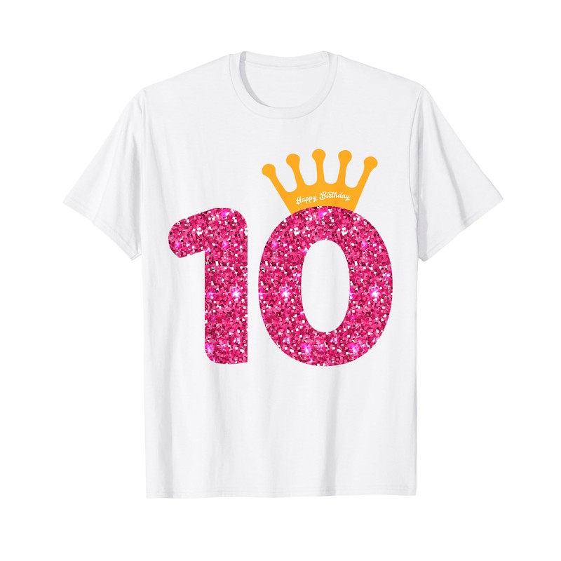 - T-Shirt: Queens Crow Happy Birthday Shirt for Girls. 10th birthday party tee. Perfect bday gift for 10 year old young, kids girl. Funny queen with pink number shirt for ten years old. Perfect present for you daughter, niece, cousin, sister, girlfriend.