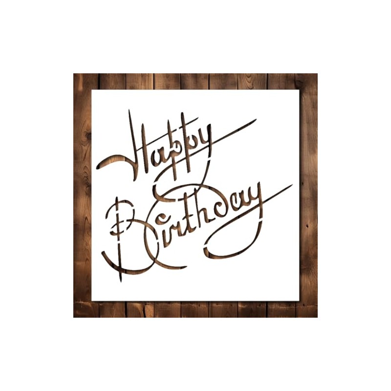 Happy Birthday Stencil Template - Reusable Happy Bday Stencils for Painting on Wood, Glass, Wall, Rock, Walls, Canvas, Glassware, Spray Painting, Airbrushing (4 x 4)