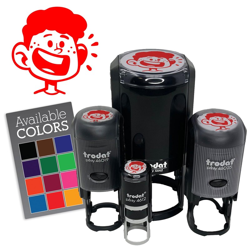 Happy Cartoon Boy Smile Freckles Self-Inking Rubber Stamp for Stamping Ink Stamper Crafting Planners - 3/4 Inch Small - Red Ink