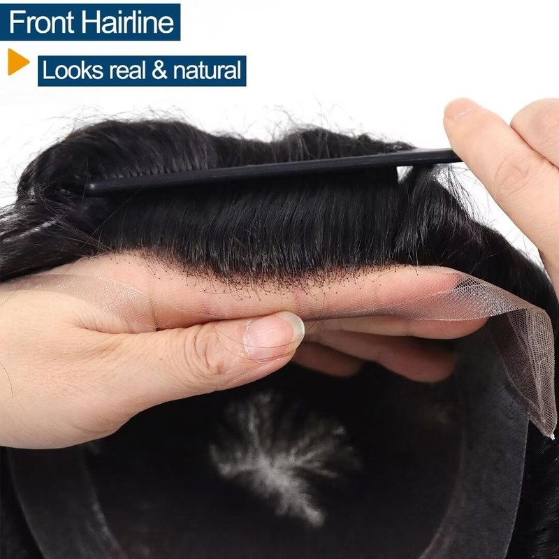 - 【Toupee Men Base Material】: Swiss lace front & center with Poly Skin men's toupee,soft ,durable and Breathable,long lifespan.