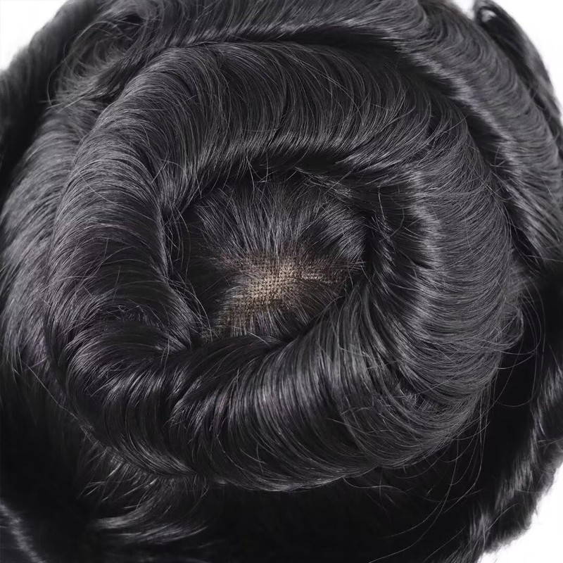 HAPPY&CC Toupee for Men Real Human Mens Hair Replacement System Breathable Thin Skin Swiss Lace Medium Light Density Hair Units Piece for Men 8x10inch #1B Off Black
