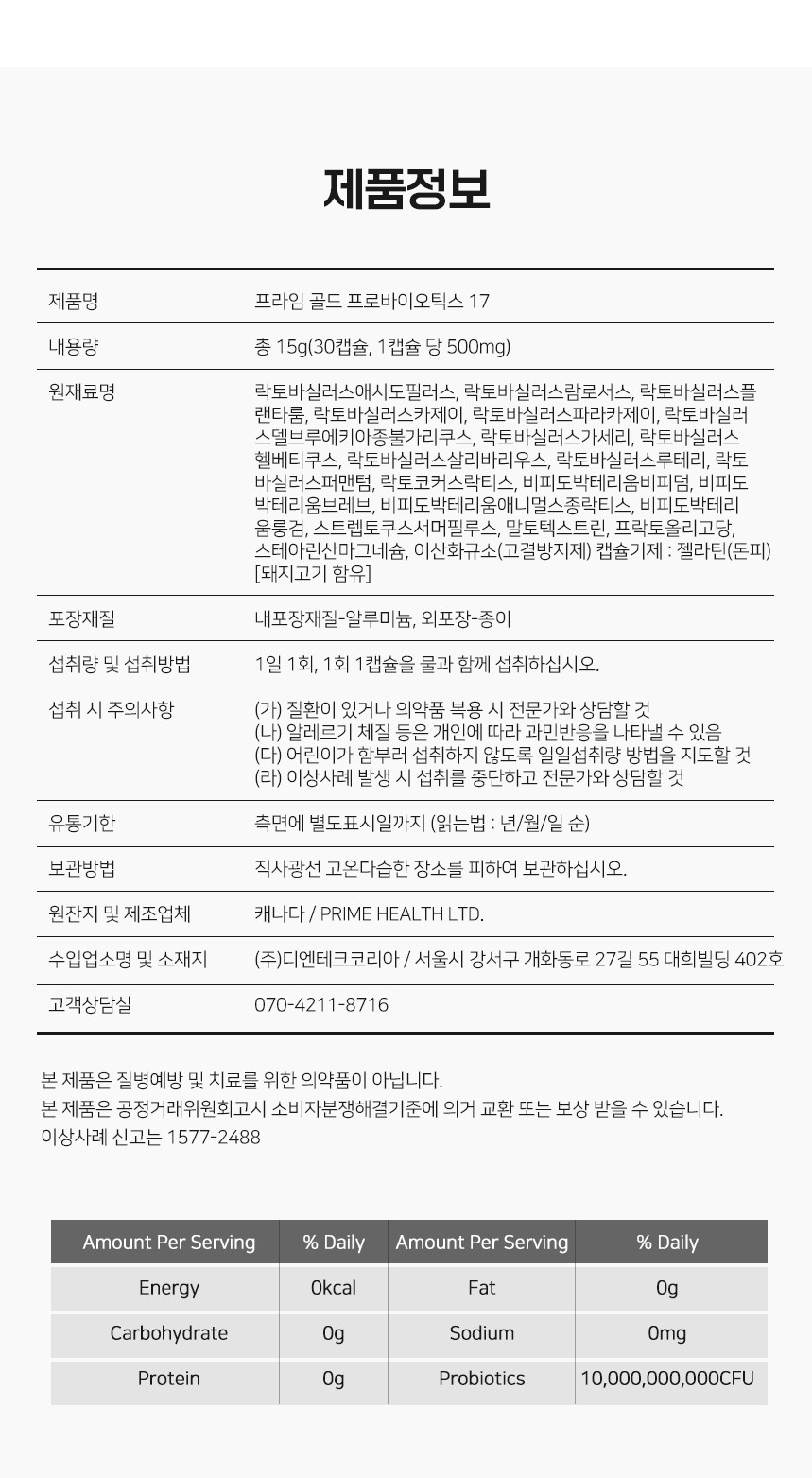 - 제품명: 프라임 골드 프로바이오틱스 17