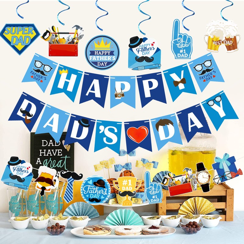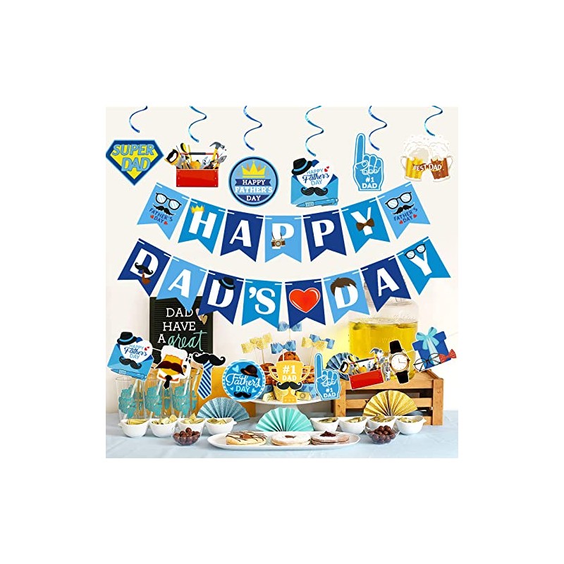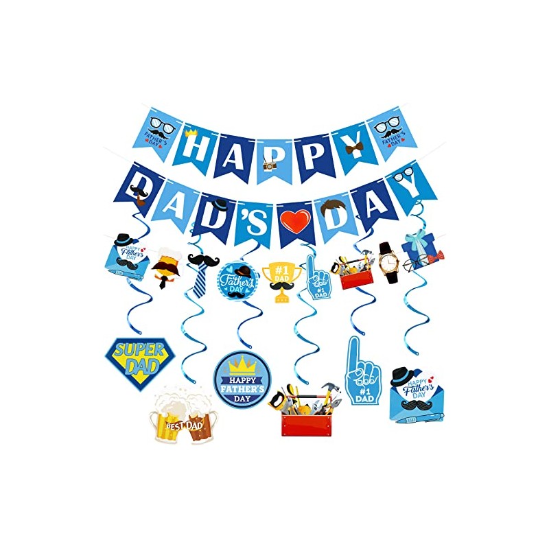 - 【Package Included】1pcs Happy Dad's Day banner,1pcs Father day garland and 6 pcs foil hanging swirls with cutout cards in 6 diverse pattern, it is a must-have exquisite fathers day party supplies set and make an unforgettable moment for your father's day party!