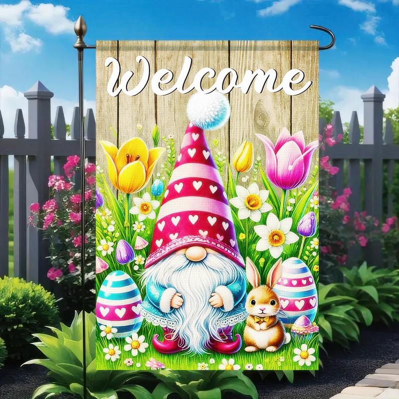 - Double-Sided Printing: The Easter Gnomes Garden Flag is printed on both sides, featuring bright and unique graphics. The text is clearly readable from both sides, making it versatile for hanging indoors or outdoors.