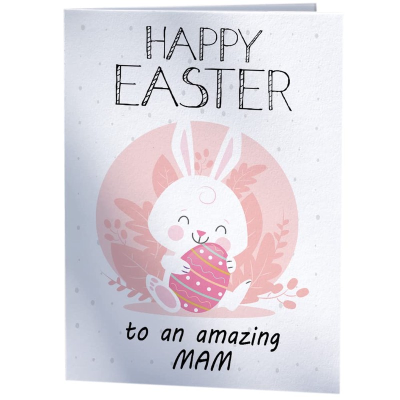 Happy Easter Card For Mam - Easter Bunny & Easter Egg Pink Design