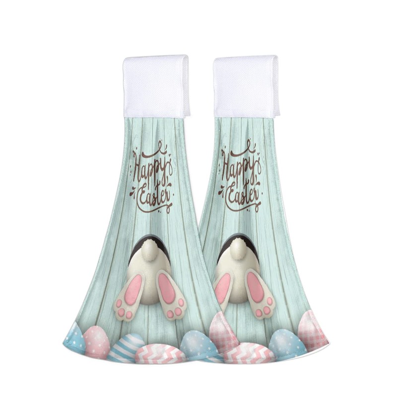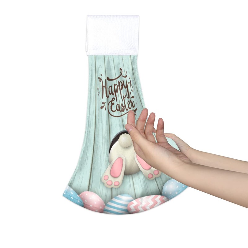 Happy Easter Day Bunny Tail Hanging Kitchen Towels 2 Pieces Rabbit Spring Holiday Hand Towels Absorbent Dish Cloth Tie Towels Tea Bar Towels with Hanging Loop for Bathroom Kitchen Decor 12x17in