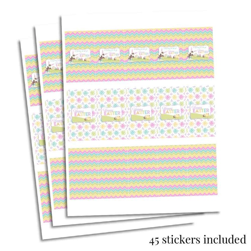 - Cuteness Overload: Designed by a talented mom, these colorful stickers feature an adorable detective bunny on the search for Easter eggs, all on a beautiful pastel background. These are perfect for coordinating every detail of your child’s Easter basket and bringing extra magic to the day. They are designed to wrap around your favorite mini candy bars, completely covering the original label for a streamlined look. Amanda Creation. Original design by Amanda Creation