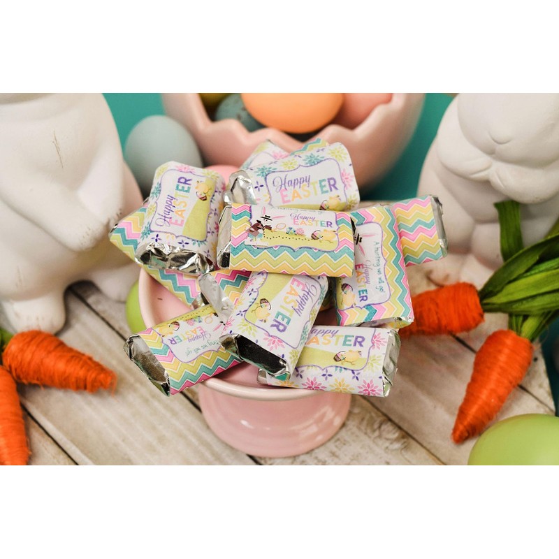 - Awesome Quality: Forget labels printed on flimsy paper, or stickers that don’t fully cover the original labeling. At 1.4"x 2.6" your Easter Egg Hunt Chocolate Bar Wrappers are sturdier than most, and the perfect size to completely cover the original label. Plus, they're printed on 60# label stock for ultra quality.
