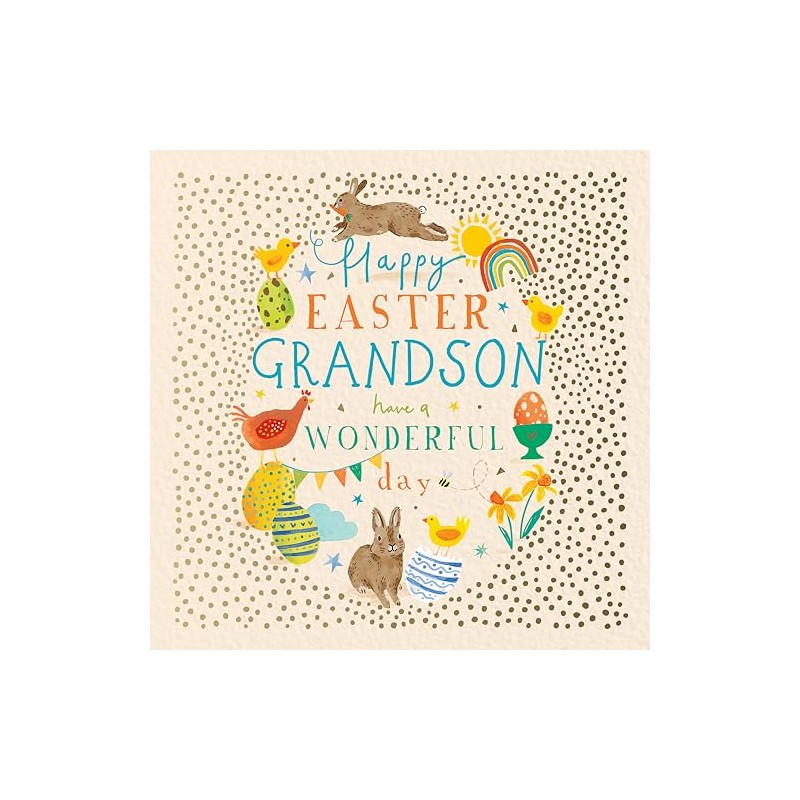 - Get your Grandson hopping with joy this Easter with a colourful and eco-friendly card featuring cute bunnies and egg-citing designs!