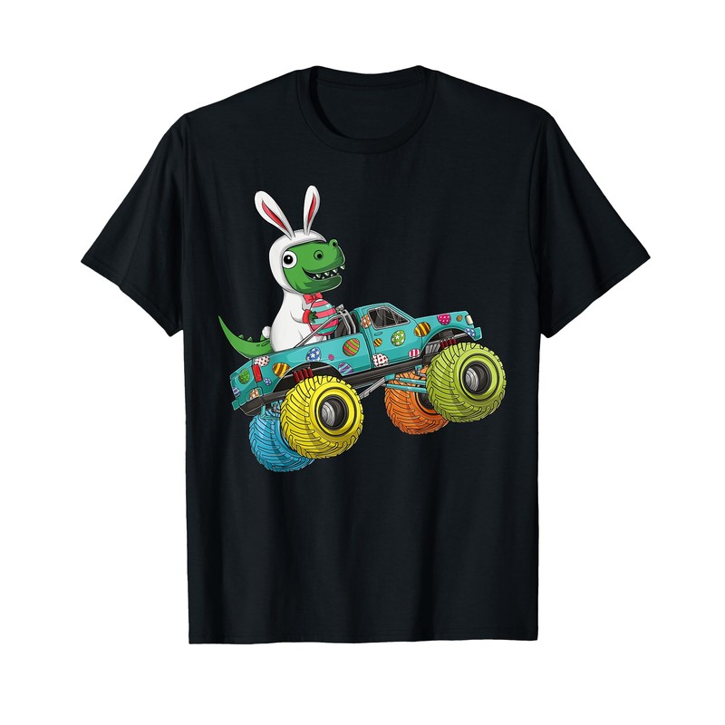 - Funny Easter Monster truck dinosaur Trex in a bunny Costume tshirt. Dino Rex graphic tee showing trex riding monster truck. Great dinosaur easter shirt to celebrate easter day 2022, it makes also a perfect matching with easter day party decorations/ decor