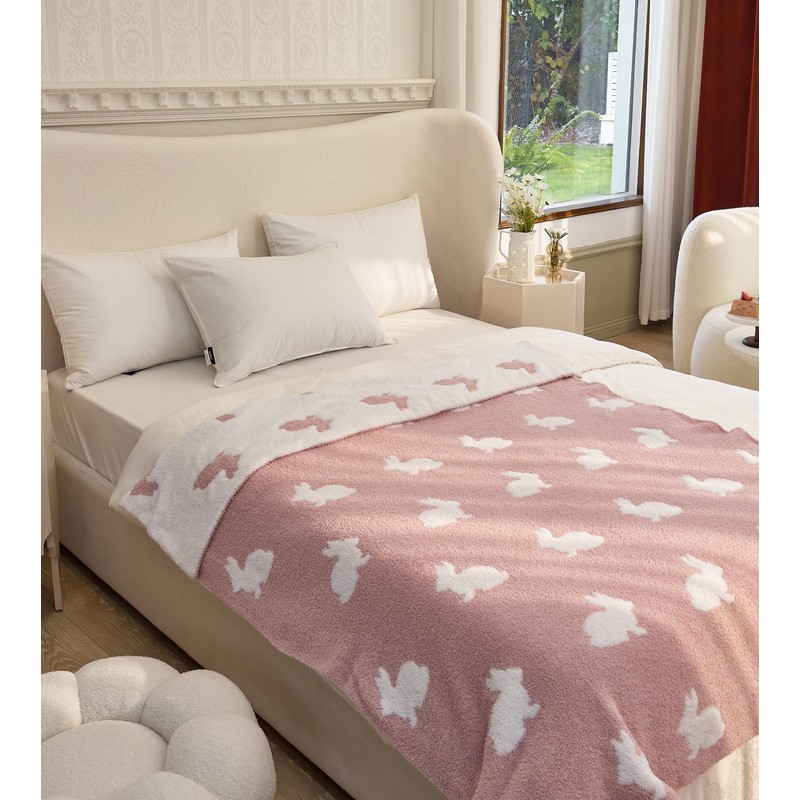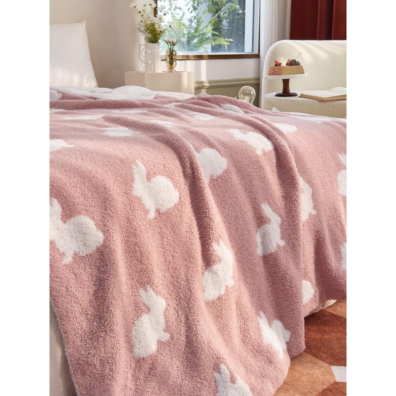 Happy Easter Rabbit Ultra-Soft Fluffy Microfiber Knitted Throw Blanket Super Cozy Lightweight Bed Blanket for Sofa Couch Bed Travel Pink 50"x60"