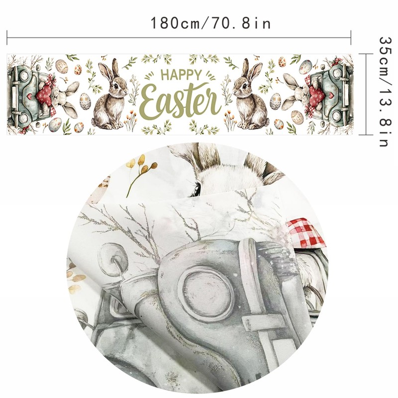 - Happy Easter table runner: Its size is 180 × 35cm, made of 100D polyester material, soft and practical, easy to clean and store