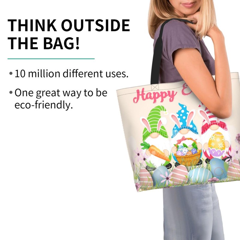 - 👜New material of tote bag:Easter bag is made of microfiber fabric,which is different from most canvas tote bags. Microfiber fabric is lighter than regular canvas,weighing only 0.4Ib. Easter gift bags is not only durable, easy to care for, and not easy to fade or break.