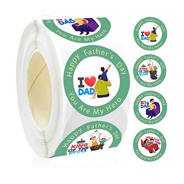 Happy Father's Day Character Sticker 2 inch Fathers Day Party Favors Envelope Seals Greeting Card Stickers for Decoration,Card,Scrapbook,Kids Crafts,Homemade Packing 500pcs (2 inch)