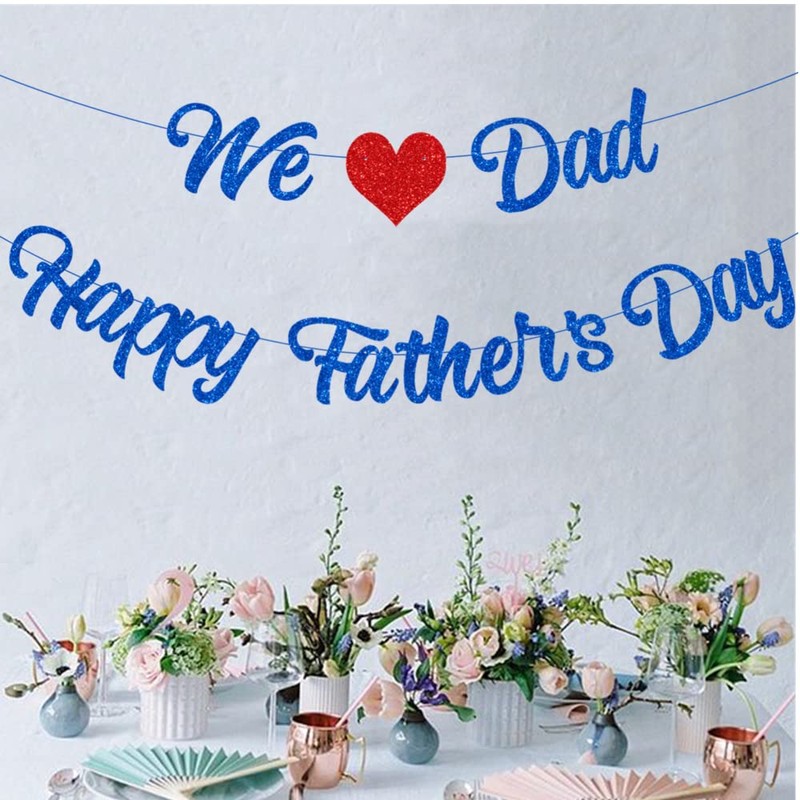 - Happy Father's Day Banner:The happy father's day bunting banner is made of reusable cardboard,featured with blue glitter "Happy Father's Day"