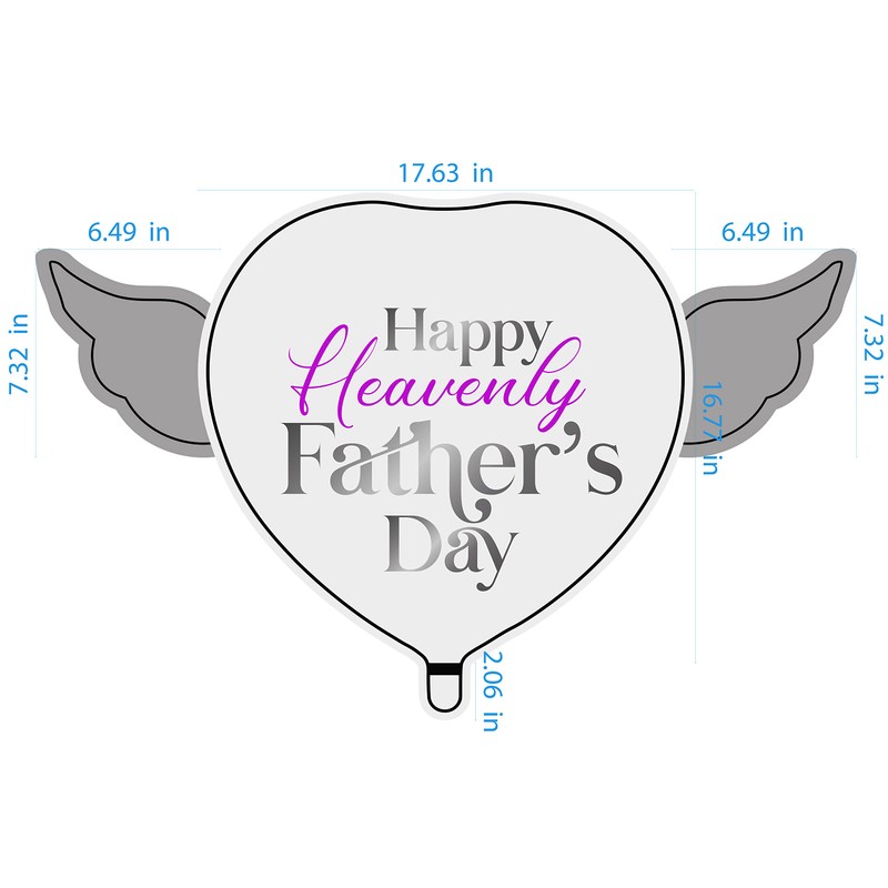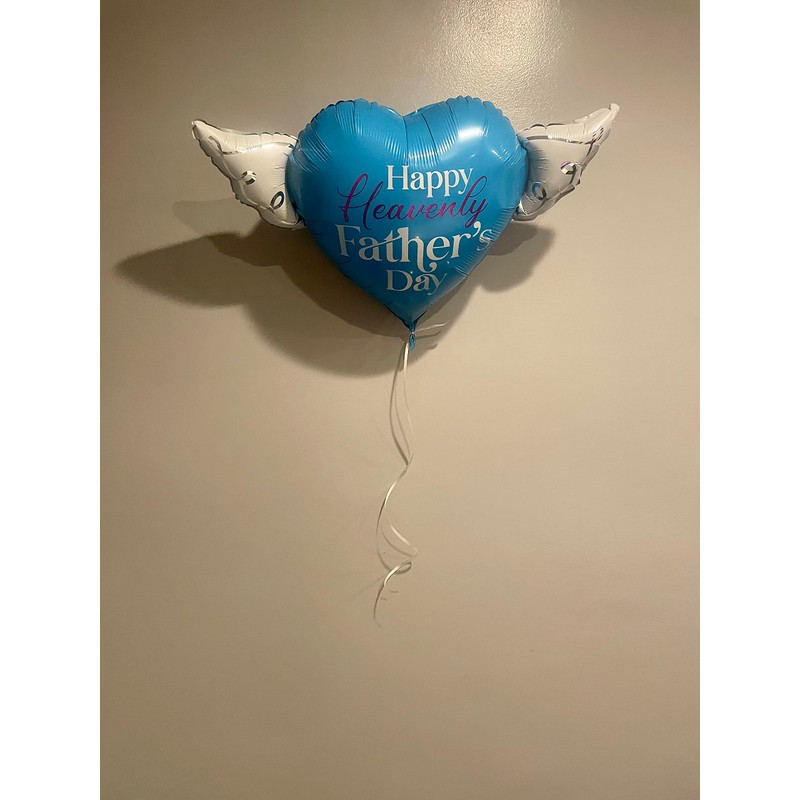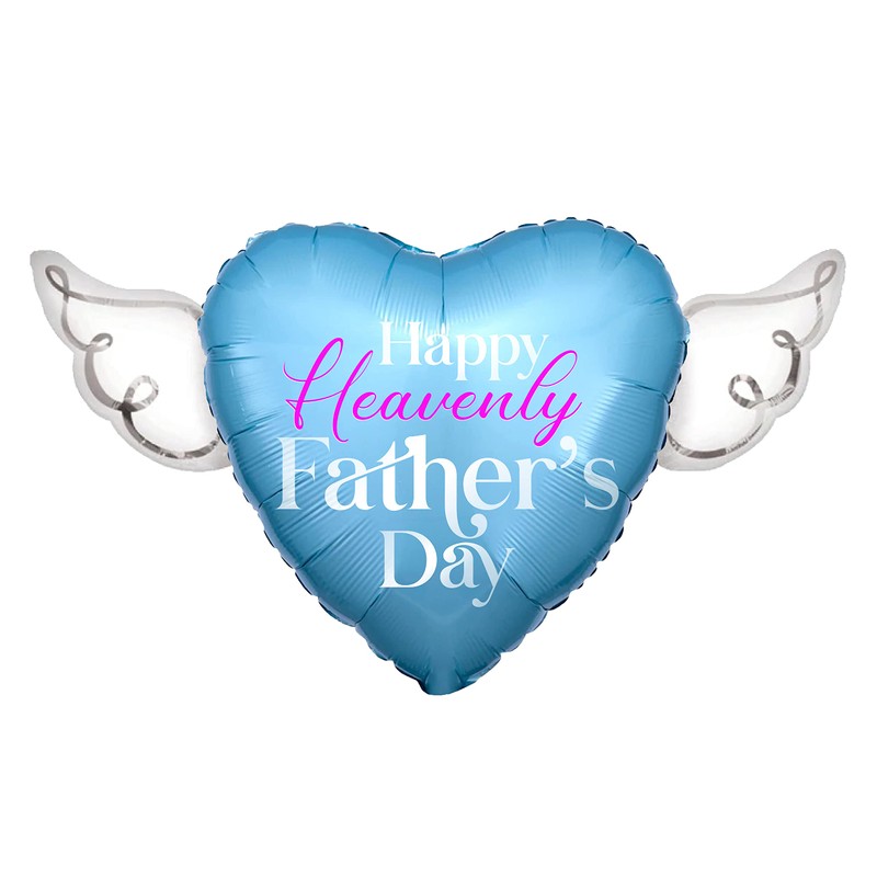 - 17" HAPPY HEAVENLY FATHER'S DAY Balloons Heart Shaped with angel wings (Blue)