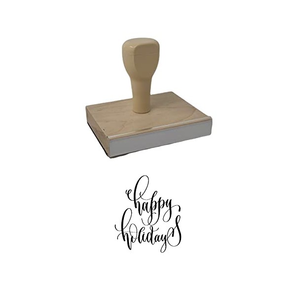 Happy Holidays Rubber Stamp, 4 X 3" Wood Stamp