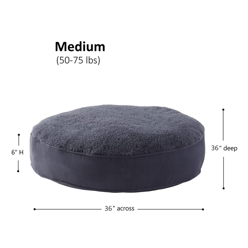 Happy Hounds Scout Deluxe Round Pillow Style Sherpa Dog Bed, Medium (36 x 36 in.), Prussian Blue, 36.0" L x 36.0" W x 6.0" Th