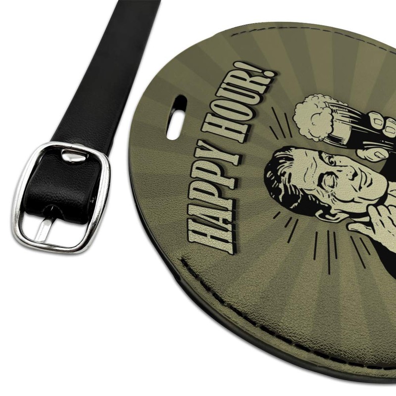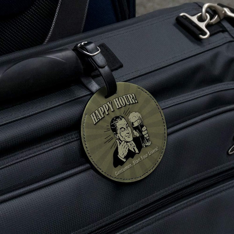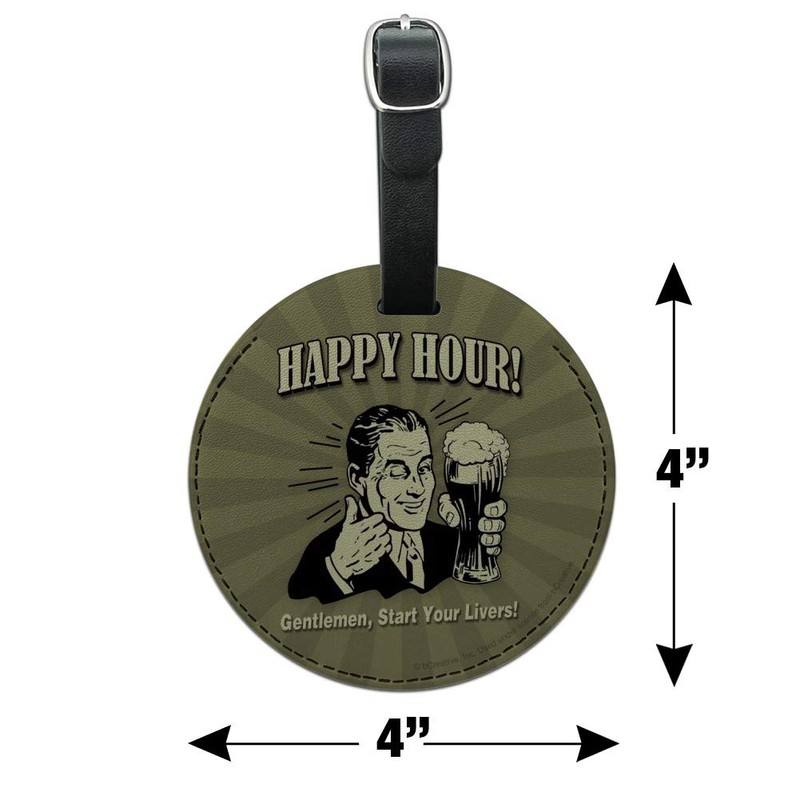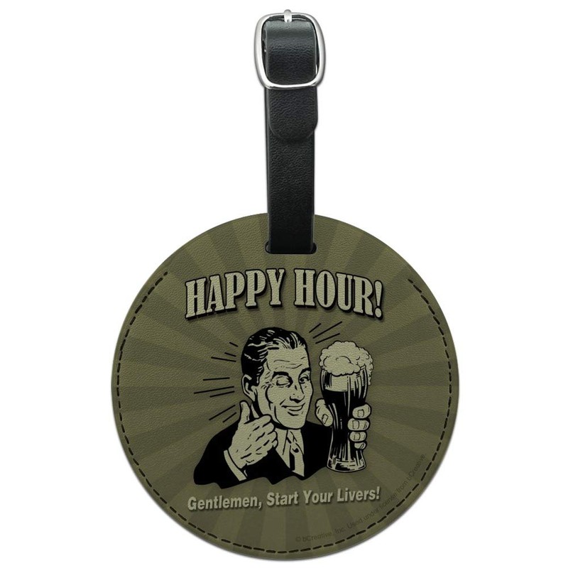 Happy Hour Gentlemen Start Your Livers Round Leather Luggage Card ID Tag