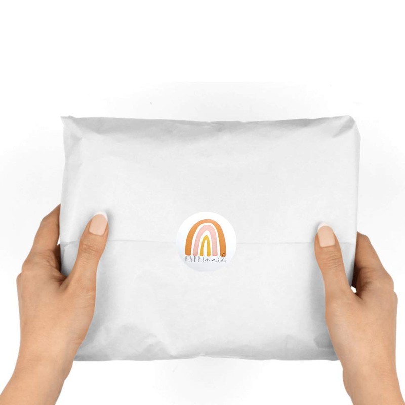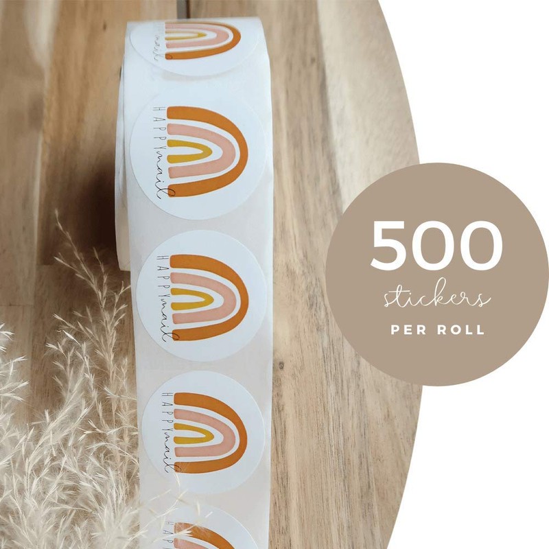 Happy Mail Stickers | Boho Rainbow Small Business Stickers | Cute Packaging for Small Business | 1 Roll with 500 - Round Envelope Seals | Small Business Packaging Supplies | Boho Rainbow Party