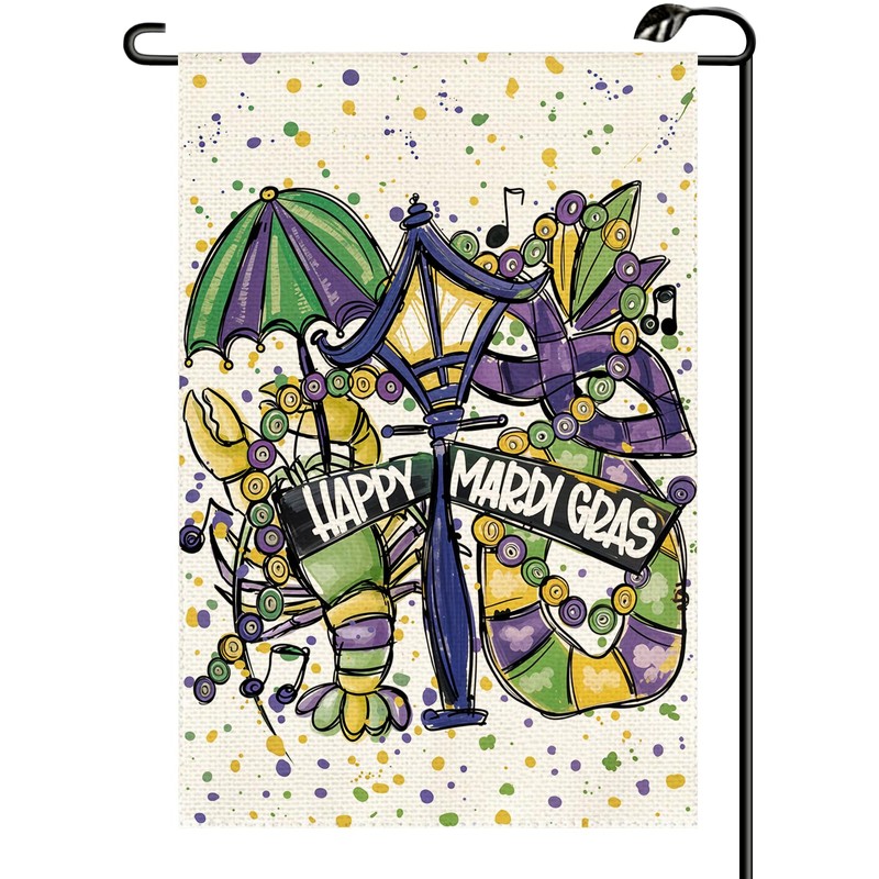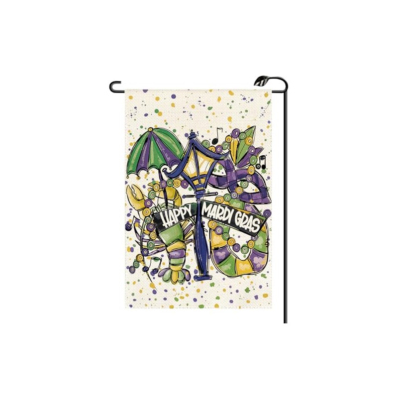 Happy Mardi Gras Garden Flag 12x18 Inch Vertical Double Sided Masquerade Mask Doughnuts New Orleans Carnival Celebration Small Flags Outside Decoration For Yard (ONLY FLAG) KH09