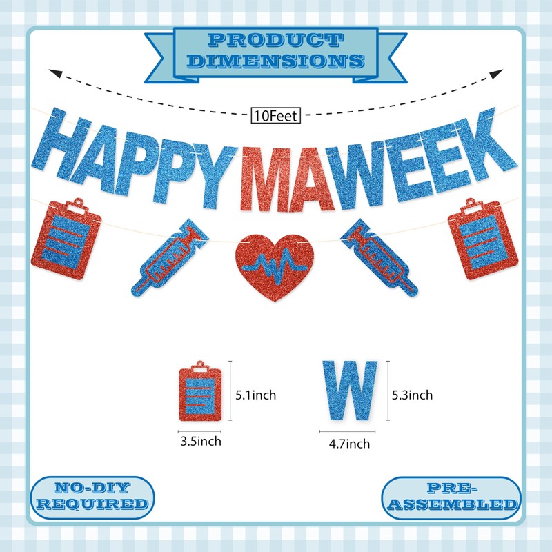 • PACKAGE INCLUDES: Our Happy Medical Assistant Week decorations include 1 piece of “Happy Medical Assistant Week” banner specifically designed for the occasion. Create a vibrant and festive atmosphere with this visually appealing decoration.
