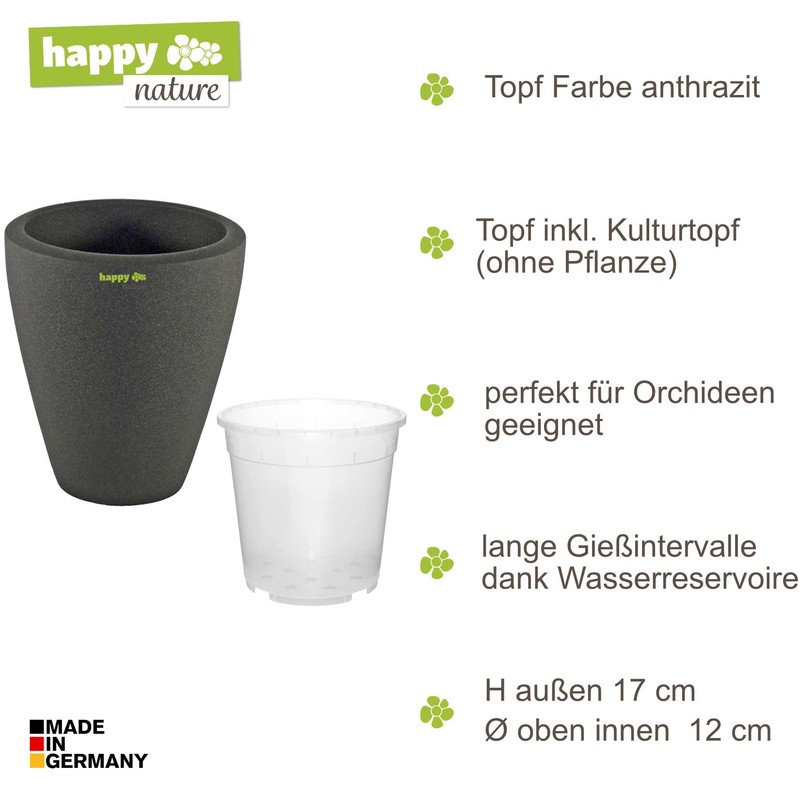 happy nature Set2 Ceramic Orchid Pot Rhodes Orchids Anthracite Height 17 cm + Culture Pot