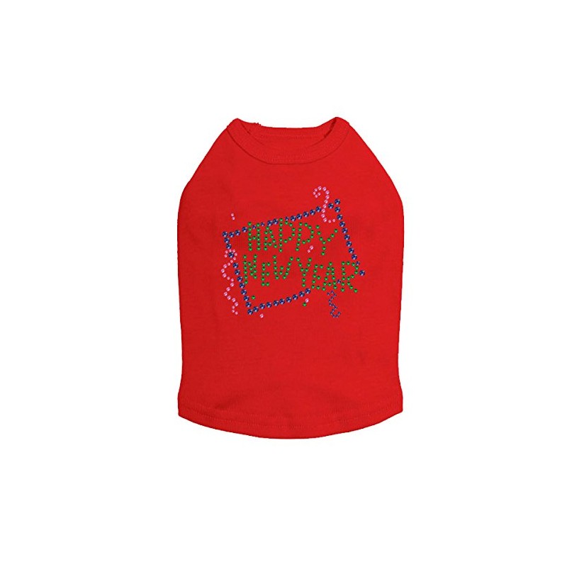 Happy New Year Confetti - Bling Rhinestone New Year Dog Shirt, 4XL Red