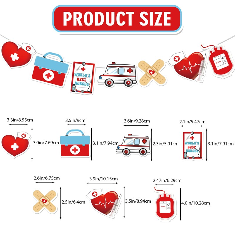 - Unique Design: Unique Red, blue and white design, Our thank you nurses full of nurse/doctor element.The garland comes with ''thanks'' party hanging swirls , ''we appreciate you''party hanging swirls etc. Fine color printing, cute patterns, bright colors, Take this Thank You Nurses Banner to your medical party now!