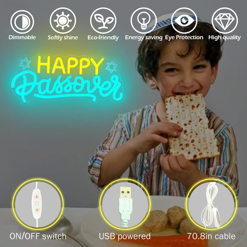 - Brightness Adjustable: The neon signs for wall decor is also equipped with a wired dimmer switch, you can adjust the appropriate brightness for pesach neon light sign according to your like