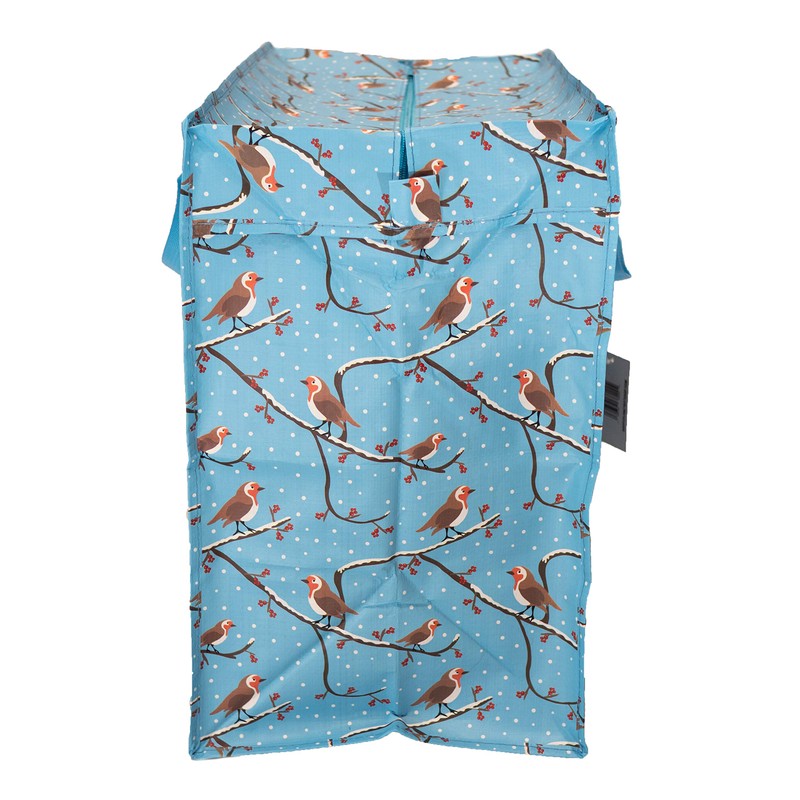 Happy Planet Giftshop Large Jumbo Storage Bag with Zip 58 x 47 x 30cm 80l (Winter Robins Christmas Xmas Design) (Single - Multipacks Available)