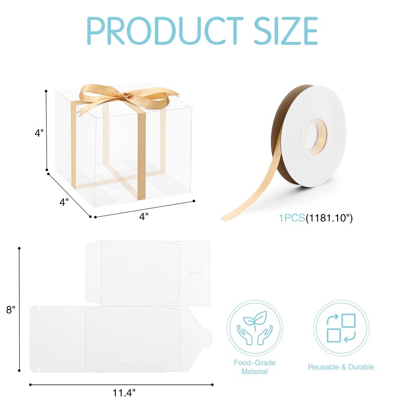 - Sturdy and Durable: Our clear plastic boxes are durable, scratch-resistant, and long-lasting, and ensure the freshness and beauty of your food. Aslo they come with a roll of gold ribbon, which will ensure the safe transport of the box while making your gift look more elegant