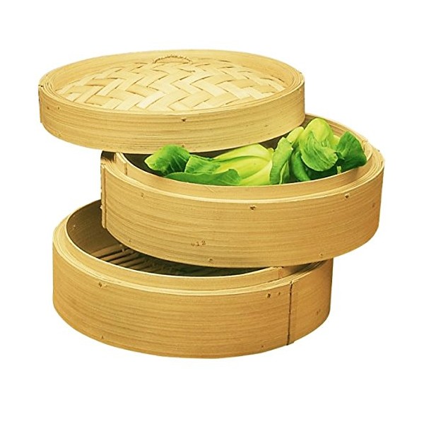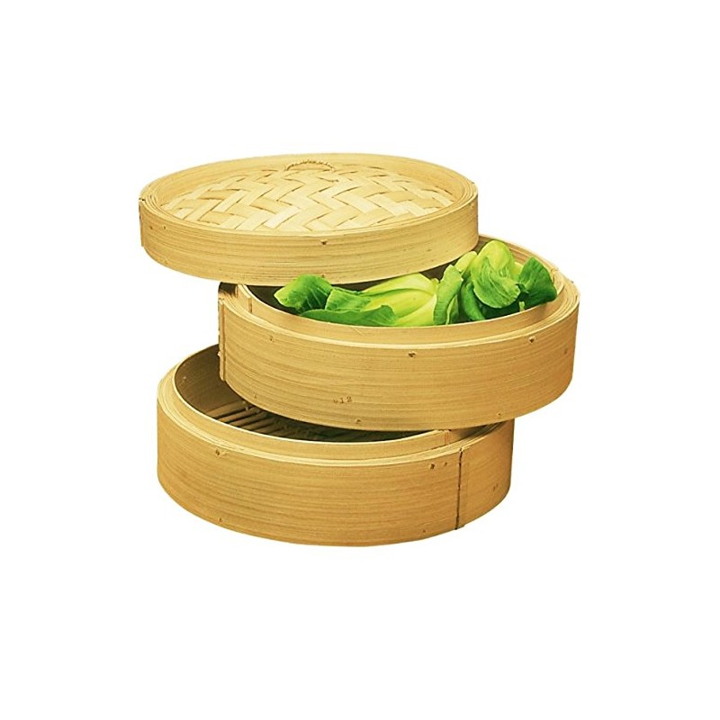 - Happy Sales HSST-BMB06, Three Piece 6 Inch Bamboo Steamer